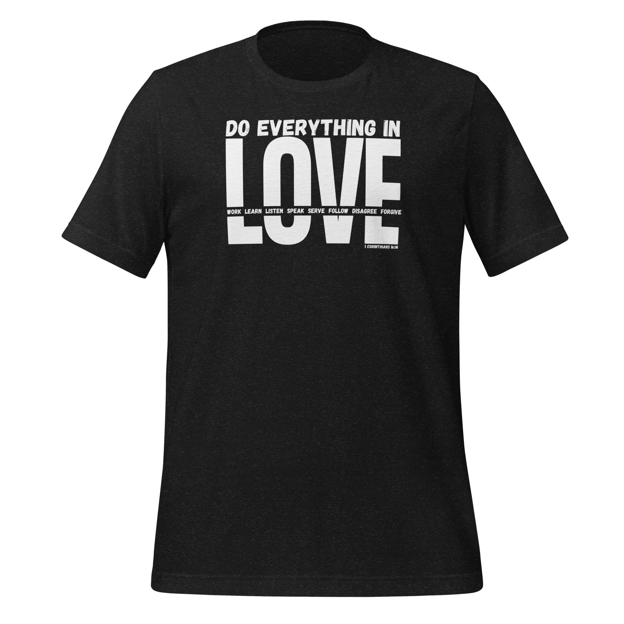 Do Everything In Love – 1 Corinthians 16:14 T-shirt (white text)