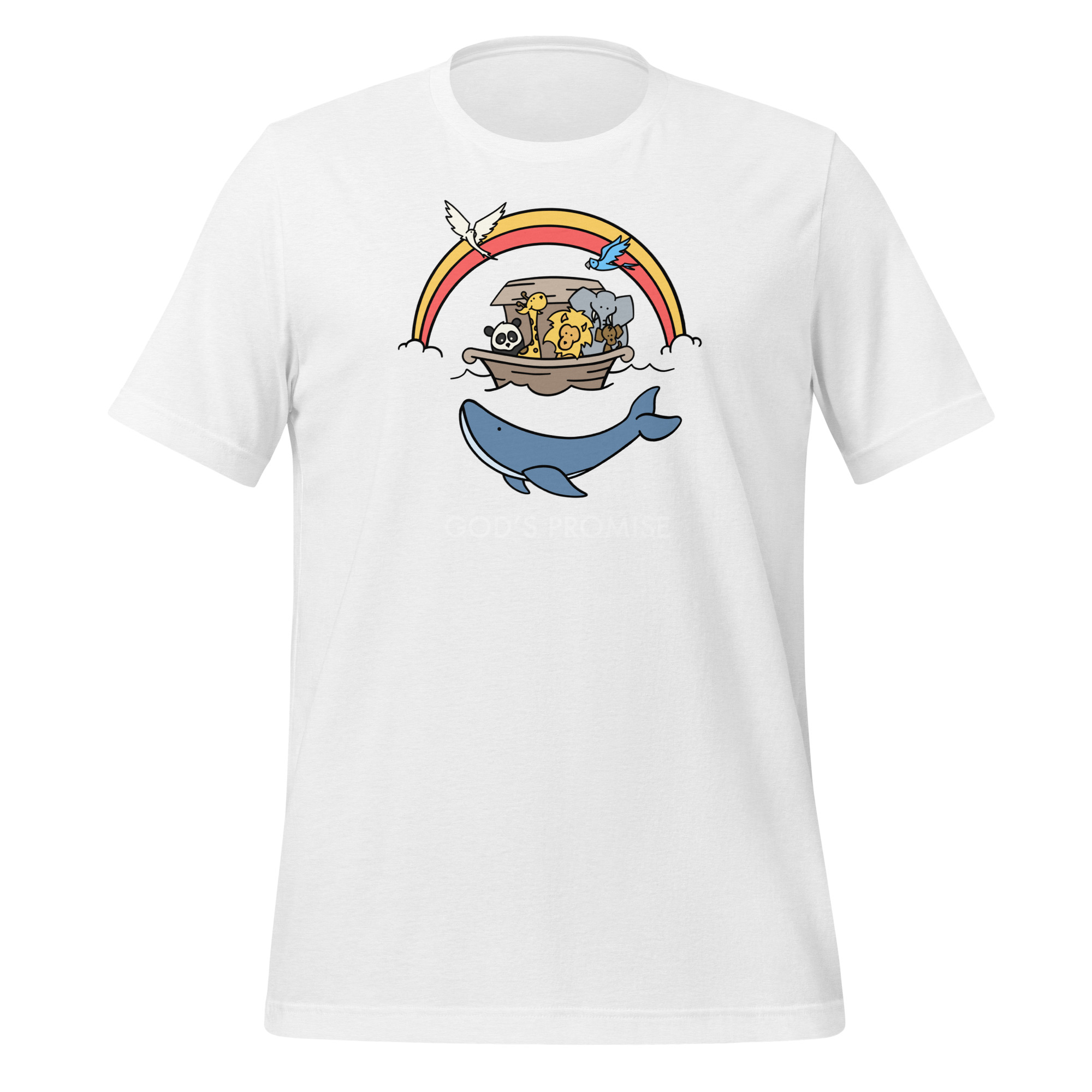 This hand-drawn Noah’s Ark design is a gentle reminder of God’s faithfulness and enduring promises. Featuring the ark resting above the waters and a whale swimming below, the artwork reflects hope, protection, and trust in God’s covenant. Finished with the words “God’s Promises,” this piece is designed to be worn as a quiet expression of faith and encouragement.